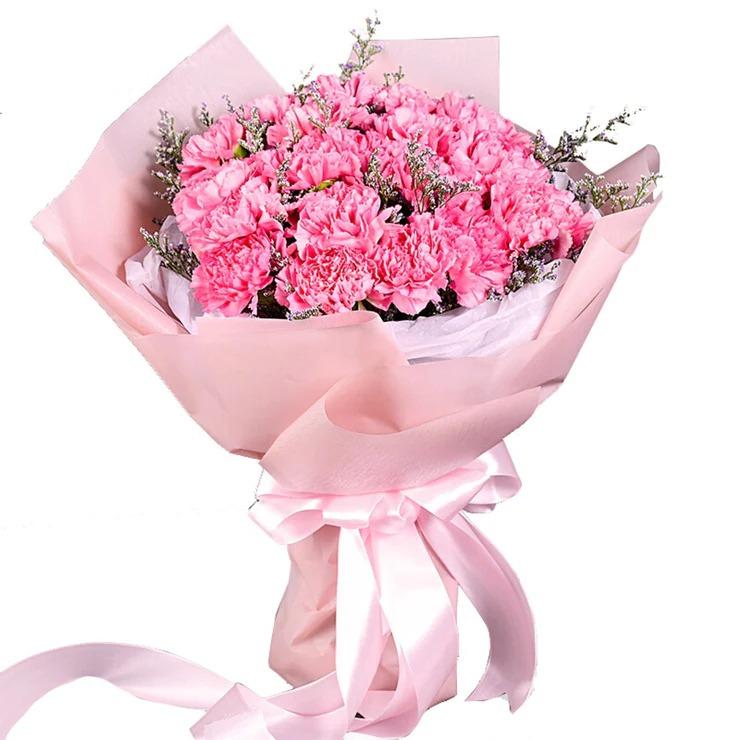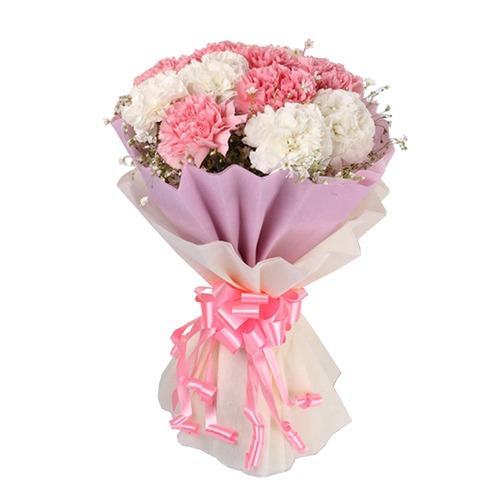 11 Pink Carnations And 8 White Carnations In A Bouquet